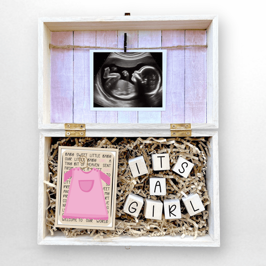 Gender Reveal Announcement Engraved Wooden Gift Box